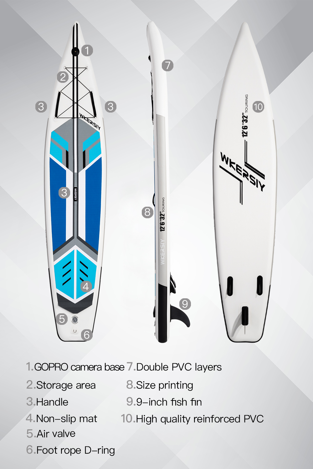 380 cm Blaues Touring-SUP | Langgestreckte Stabilität, Ultrakomfort & Kamerabereites Cruising-Design – WKersiy